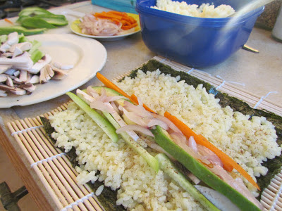 התחלנו עם דפי הנורי המסורתיים, עם האורז המיועד לסושי, ושם קצת התפרענו.